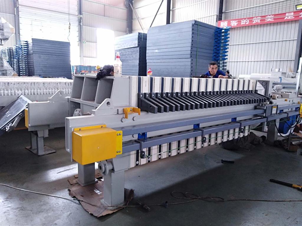 過濾的驅動力是過濾介質上的壓差,稱為工作壓力。壓濾機的過濾過程是:懸浮液從進料通道引入每個濾框,濾液在壓力下通過過濾介質層流向濾板過濾器表面,從濾液出口排出。過濾器的表面。凹槽集中在孔外。